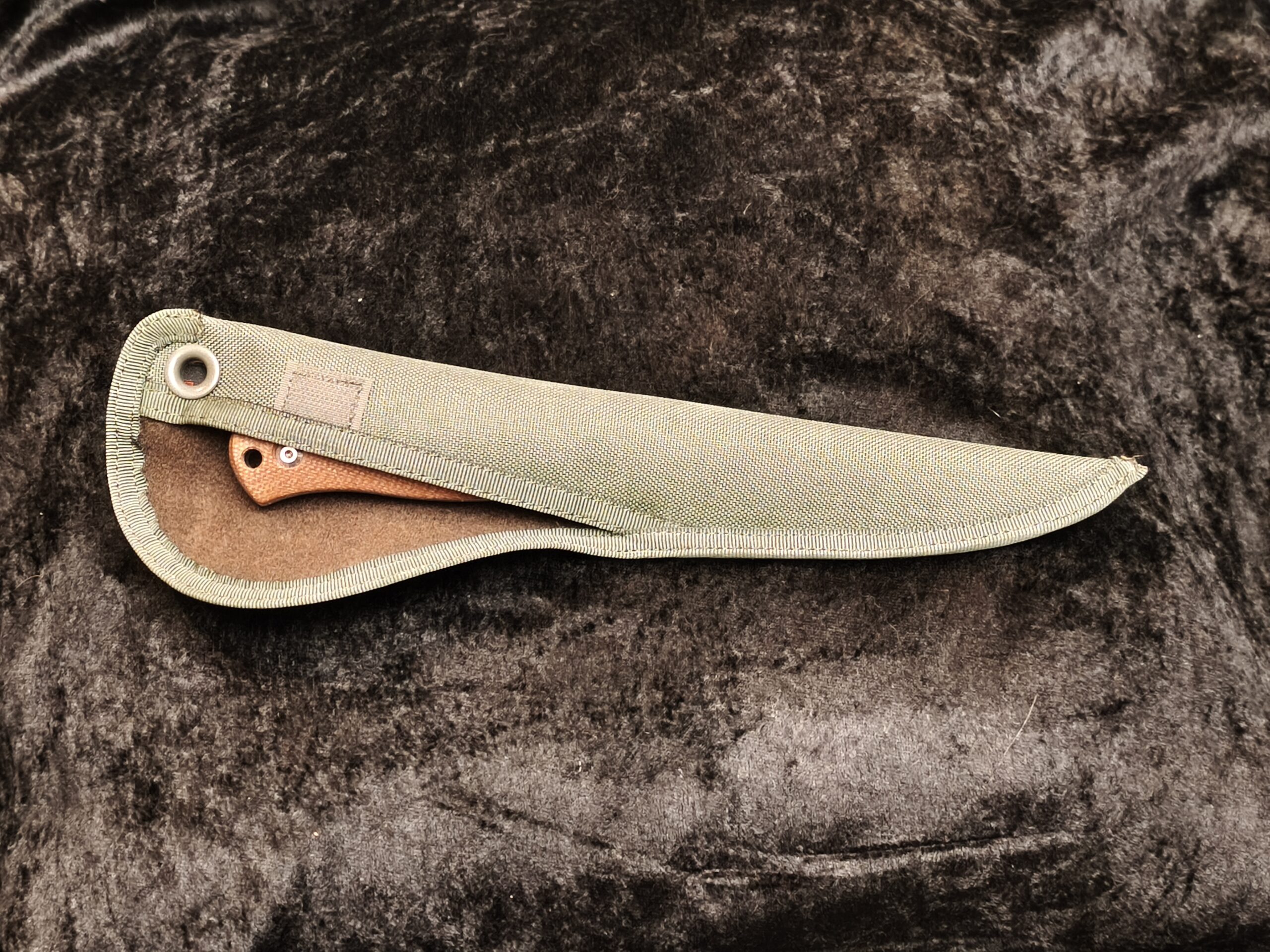 Scandi lihviga tera tagab suurepärase soorituse puidutöös, köie lõikamisel ja uluki nülgimisel. Umbes 26° teritusnurk pakub head tasakaalu vastupidavuse ja täpsuse vahel. See täisrood konstruktsiooniga nuga on loodud taluma suurt koormust, samal ajal kui micarta käepide tagab väga hea mugavuse ja kindla haarde ka pikemaajalisel kasutamisel. Randmepaela ava ning komplektis olev vastupidav nailontupp muudavad selle usaldusväärseks ja kohe kasutusvalmis kaaslaseks bushcraft-huvilistele.