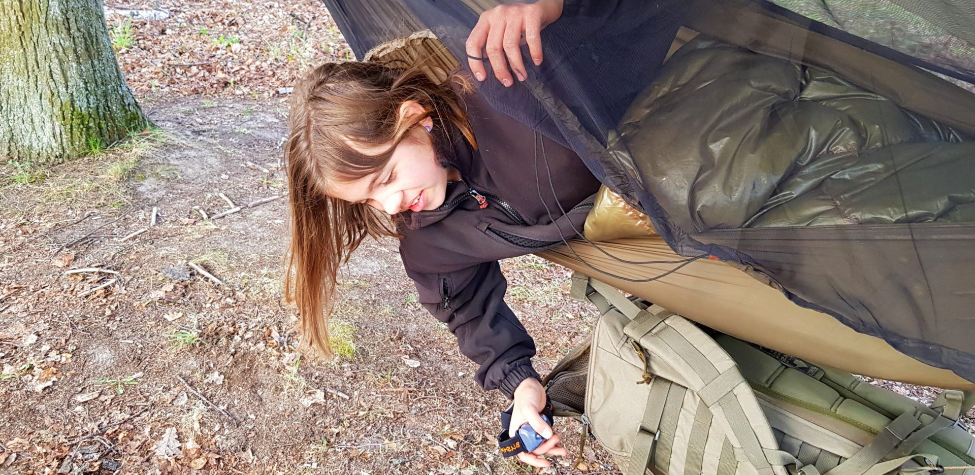 Valmis – siseneme rippvoodisse / väljume sellest, vabastades vöö ja tõstes sääsevõrgu.