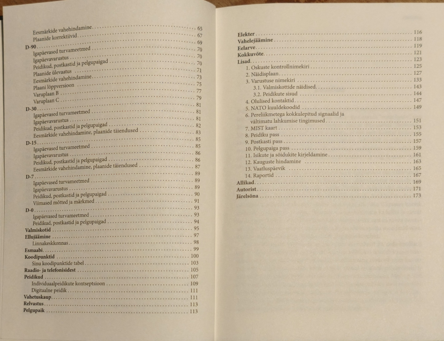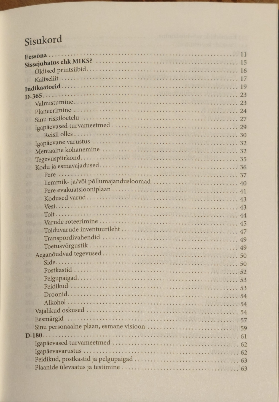 Kui riigil ja jõuametitel on omad plaanid, siis rohujuuretasandil ettevalmistuste tegemine ning sellealane harimine on jäänud vaeslapse ossa. Just seda lünka antud sari likvideerib. Esimene osa on keskendunud ettevalmistustele enne konflikti puhkemist – riskide hindamisele ja plaanide koostamisele. Oma oskuste, võimaluste ja varude kaardistamine – mida on vaja juurde õppida ja hankida, mis saab perest ja lemmikutest. Väga praktilised nõuanded kuluvad ära nii pisema looduskatastroofi korral kui ka internetipettuste vältimisel. Läbimõeldud ja plaanijärgne elukorraldus aitab igapäevaseid kulusidki kokku hoida, kuna emotsiooniostud jäävad tegemata. Raamatu ülesehitus on ajaskaalal tänasest päevast võimaliku konflikti algushetkeni ja läheb vastavalt detailsemaks. A5 kõvade kaantega formaat on mõeldud kaasas kandmiseks ning oma märkmete, plaanide ja loendite koostamiseks. Selleks on ette nähtud tühjad tabelid ja täidetavad mallid – kirjuta sinna julgesti, kuna märkmetest koos raamatu sisuga moodustub lugeja isiklik plaan. Meie igapäevane elukorraldus on hapram kui arvame – piisab, kui suurem kaubalaev laseb õiges kohas ankru vette ja juba on meie internetiühendus välismaailmaga küsimärgi all ning elektri hind mitu korda kallim. Paljusid neist riskidest on võimalik ennetavalt vältida ja on võimalik, et naaberriik jätab sigadused tegemata kui neist pole tema jaoks loodetud kasu. Koju varutud makarone ei pea kohe maasse kaevama, aga vajadusel peab olema vastav koht eelnevalt välja valitud. Meie maapõu on täis sinna peidetud esemeid – peale II maailmasõda, kui algas kolhooside moodustamine, kaevati sinna isegi hobutööriistu. Meie esivanemad ei olnud rumalamad, nad tegid seda vajadusest lähtuvalt ja paraku on käes aeg, mil peame turvalisusele ja kestmajäämisele uuesti mõtlema. Siiski on läinud aeg edasi ja metsavennaromantika tänapäeva ühiskonna ning tehnika arengu juures ei ole enam reaalne – tuleb kombineerida vanu tarkusi uute võimalustega.